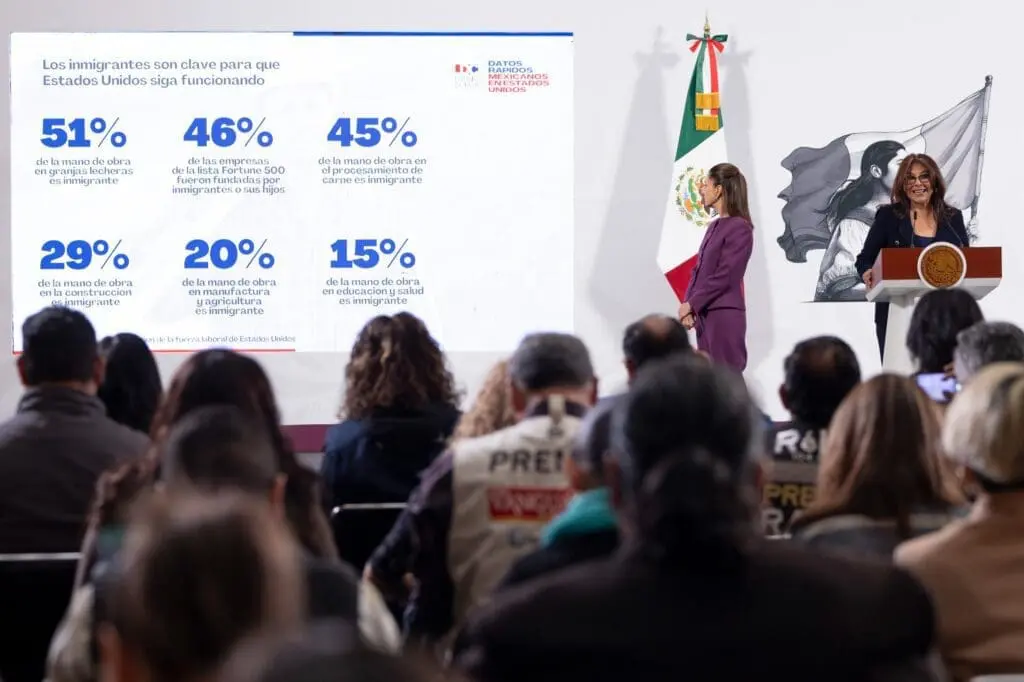 Señaló que, de acuerdo con Latino Donor Collaborative (LDC), hay cerca de 40 millones de mexicanas y mexicanos en Estados Unidos, de los cuales solo 4 millones no tienen documentos, por ello es importante que conozcan con argumentos su contribución a la economía estadounidense.