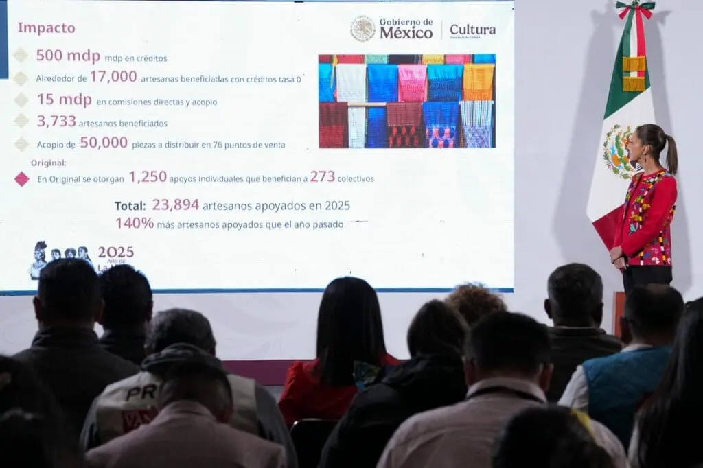“Es parte también del Plan México (…) es un programa noble que representa recuperación de la cultura de los pueblos indígenas a partir de su propia creación y al mismo tiempo bienestar, porque el objetivo es que se reciba lo justo por estas obras de arte que crean las manos de las artesanas y artesanos del país”, añadió.