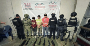 AMATENANGO DE LA FRONTERA, CHIAPAS.- Elementos del Ejército Mexicano, Guardia Nacional, Fiscalía del Estado y Policía Estatal capturaron a cinco presuntos integrantes del Cártel de Sinaloa, luego de una refriega registrada en una zona rural de este municipio, donde además se aseguraron armas, vehículos y municiones. De acuerdo con información oficial, las fuerzas de seguridad realizaban…