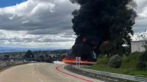 Pipa con diésel se incendia en la autopista México-Puebla