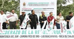 BENEMÉRITO DE LAS AMÉRICAS, CHIAPAS.- El gobernador Eduardo Ramírez Aguilar puso en marcha la reconstrucción del camino E.C. Fronteriza del Sur–Zamora Pico de Oro–Las Guacamayas–Boca de Chajul–E.C. Fronteriza del Sur, una obra estratégica con inversión superior a 67.6 millones de pesos que beneficiará a más de 17 mil habitantes de distintas comunidades de la región…