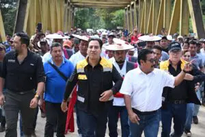 Maravilla Tenejapa, Chiapas.- El gobernador Eduardo Ramírez Aguilar constató este sábado la pavimentación con concreto mixto del camino La Democracia–Plan de Río Azul–Nueva Sabanilla–Benito Juárez, en el tramo del km 0+000 al km 30+800, en particular en el subtramo del km 0+000 al km 2+200, proyecto que significó una inversión de 25 millones de pesos.…