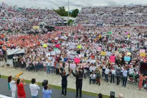 MÉXICO.- La Presidenta Claudia Sheinbaum alcanzó un récord histórico este sábado 20 de septiembre. En un solo día reunió a 72 mil personas durante su gira de rendición de cuentas en Chiapas, Tabasco y Campeche. El recorrido reflejó el respaldo ciudadano al proyecto de Transformación. En Tapachula, Chiapas, 40 mil asistentes colmaron el Estadio Olímpico.…