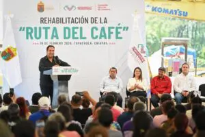 Tapachula, Chiapas.- El gobernador de Chiapas, Eduardo Ramírez Aguilar, puso en marcha los trabajos de rehabilitación de la Ruta del Café en Tapachula, con una inversión superior a 40 millones de pesos destinada a la pavimentación de distintos tramos y la construcción de un puente tipo cajón, acciones que beneficiarán a más de 357 mil…