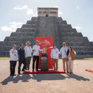 Tinum, Yucatán.- El ambiente mundialista ya se siente en todos los rincones de México y ahora fue el turno de Chichén Itza. El complejo arqueológico más importante en Yucatán fue la sede para la presentación del trofeo de la Copa del Mundo de la FIFA. La leyenda mexicana Hugo Sánchez fue el encargado de presentar…